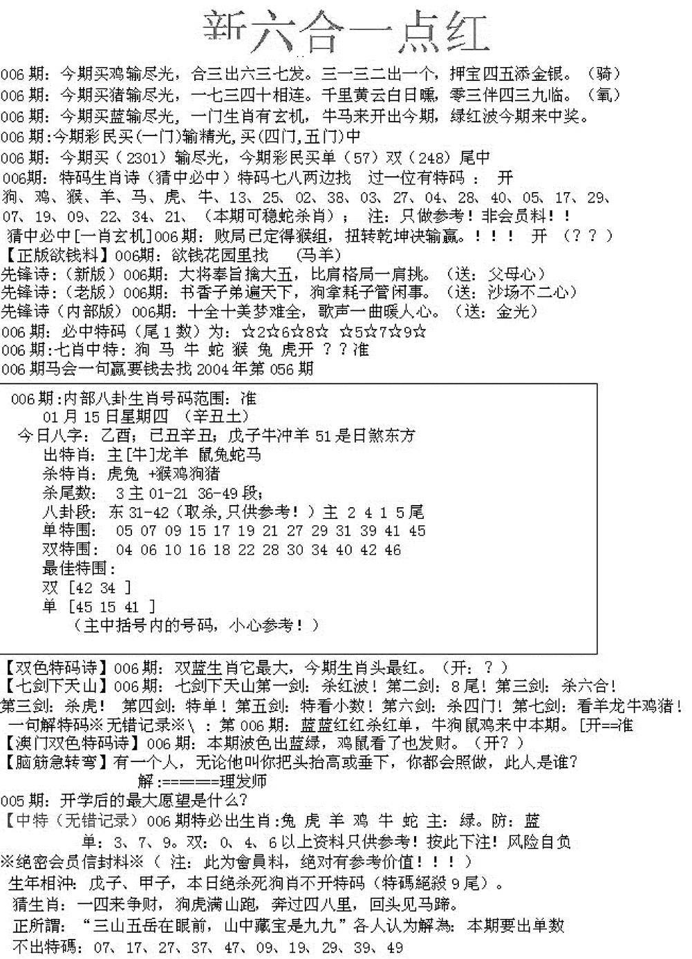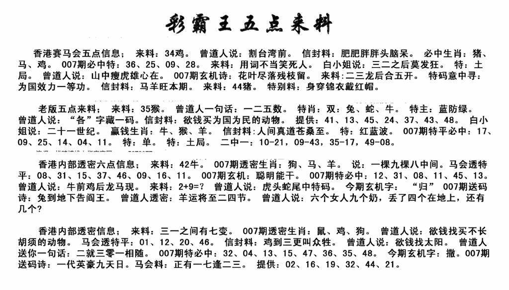 新版内部玄机A