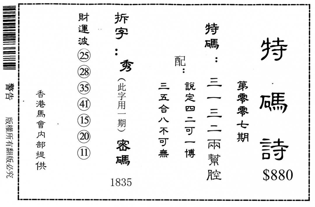 香港天机信封