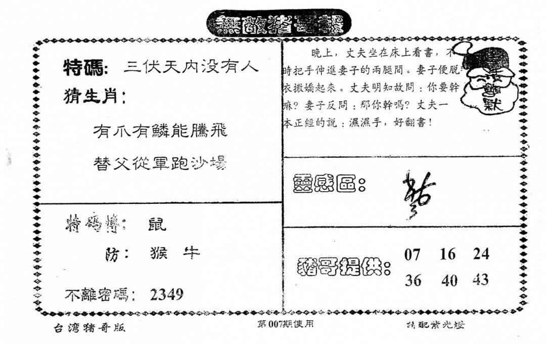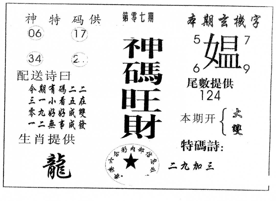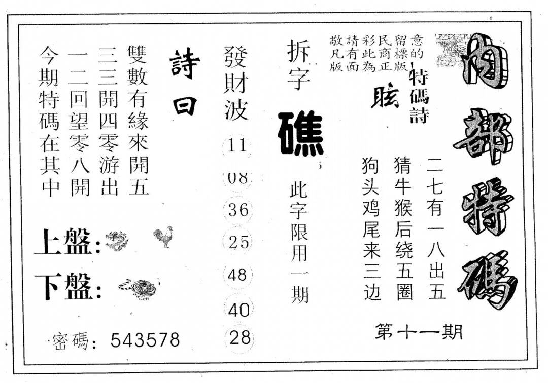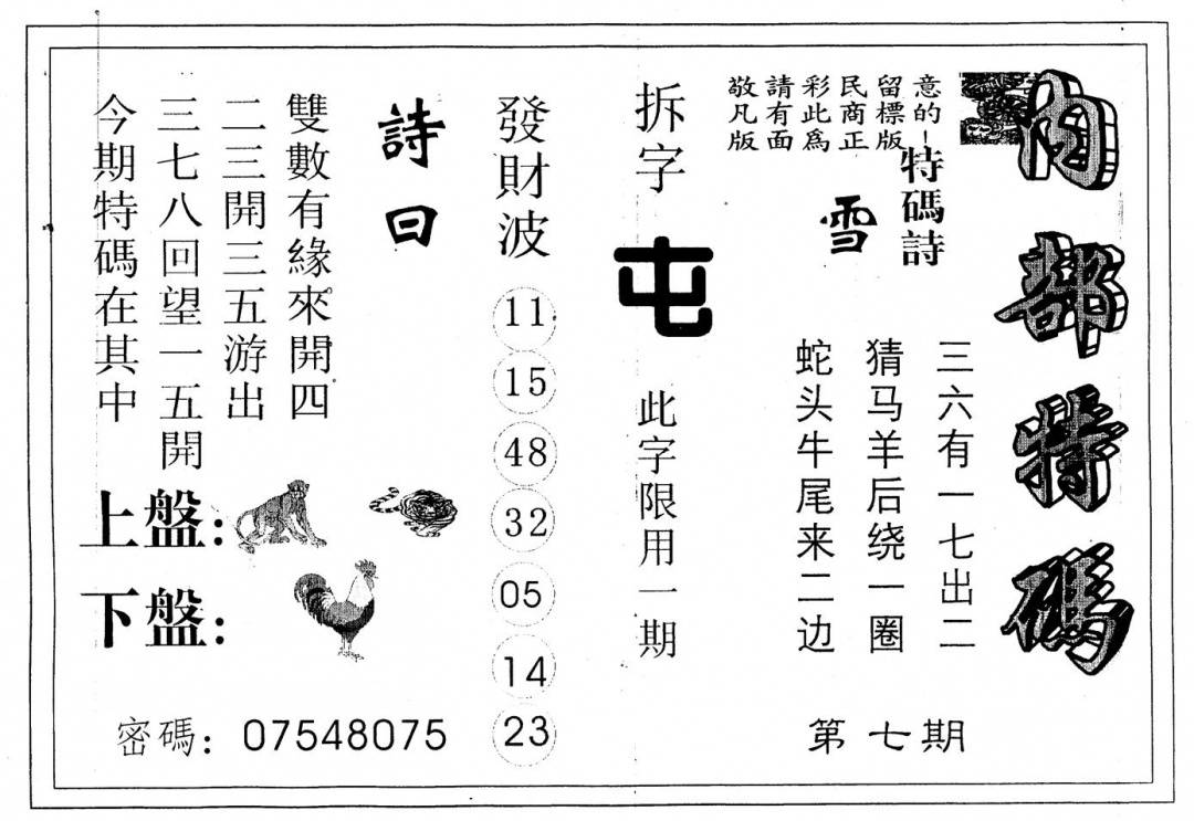 另版心水特码(早图)