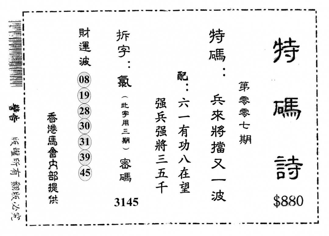 老版880特码诗
