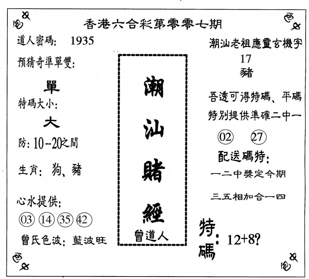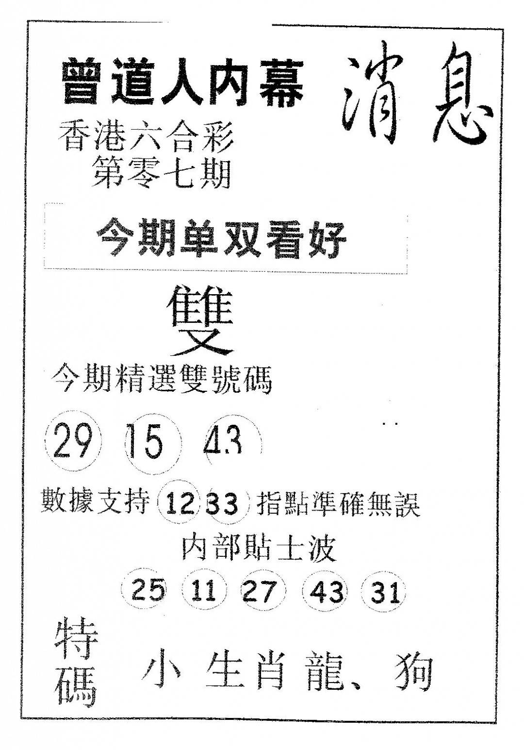 曾道人权威消息A