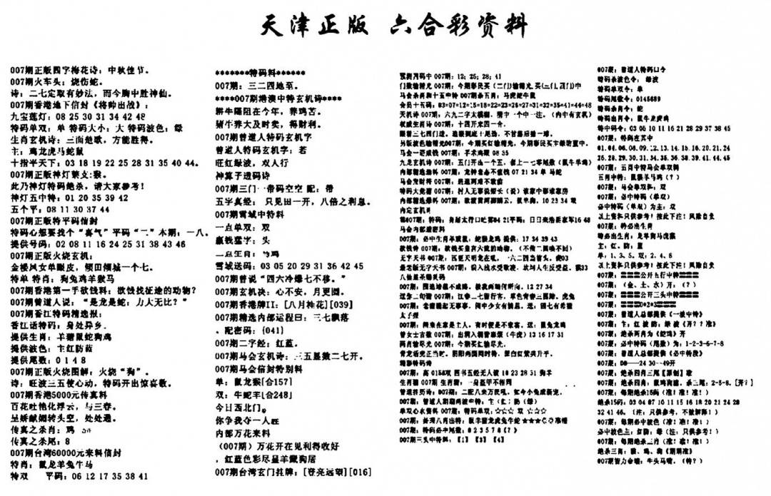天津正版六合彩资料
