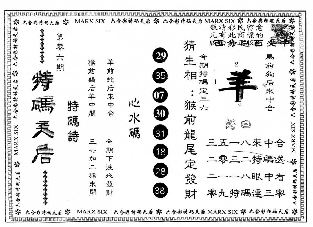 另版特码天后
