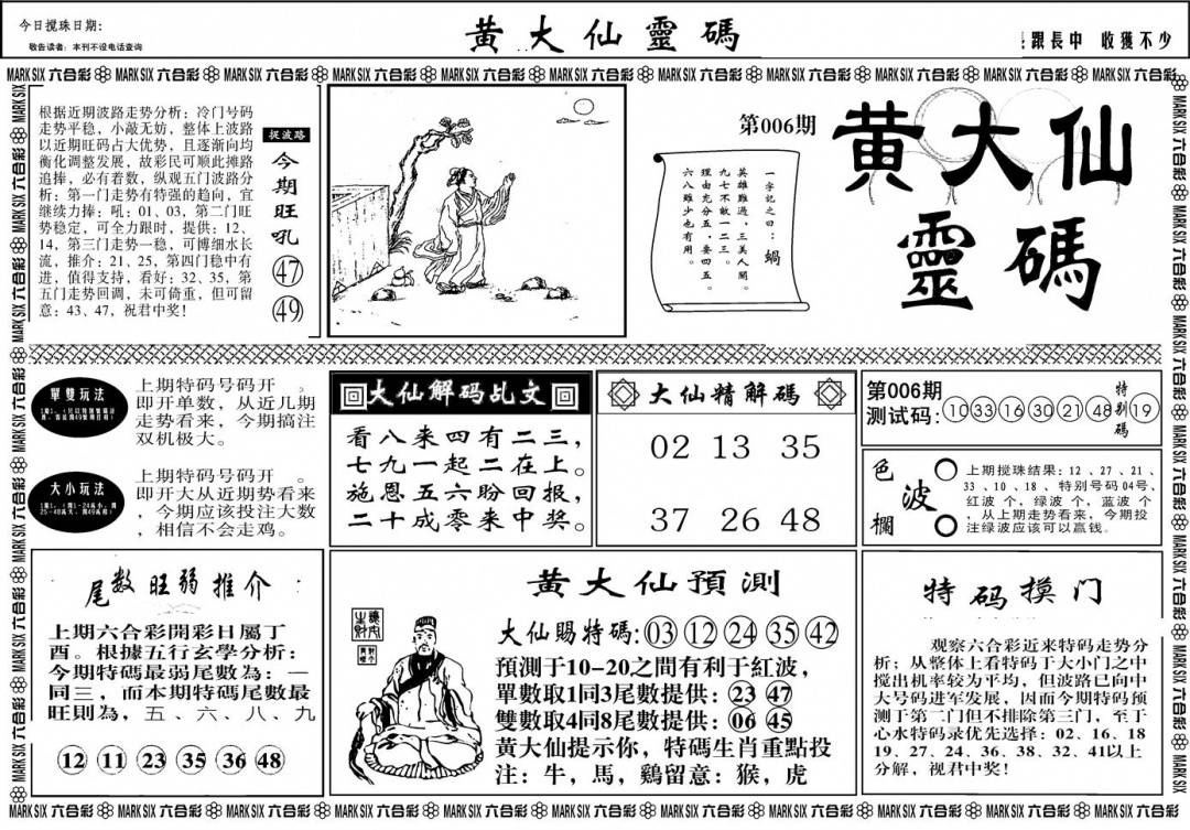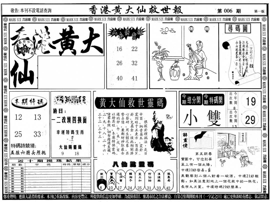 另版黄大仙灵码A