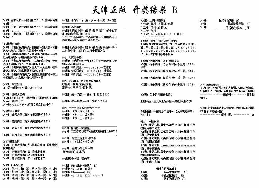 天津正版开奖结果B