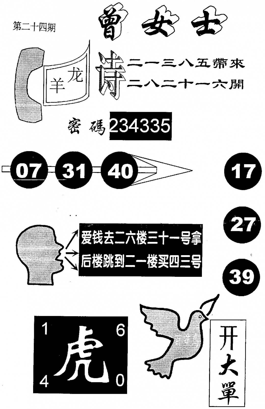 曾女士特码诗