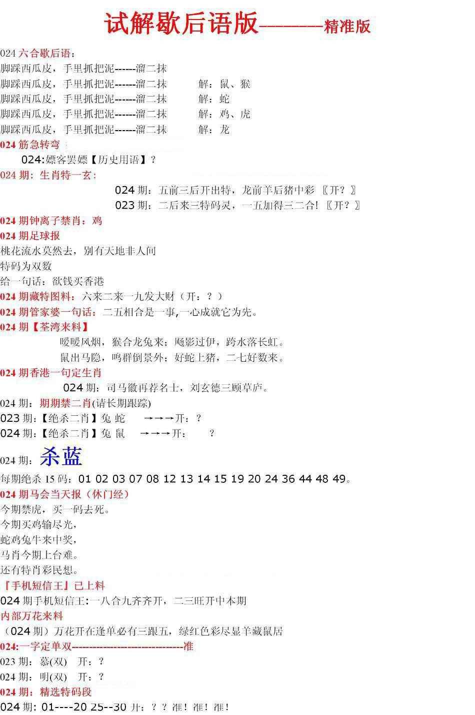 曾道人权威消息A